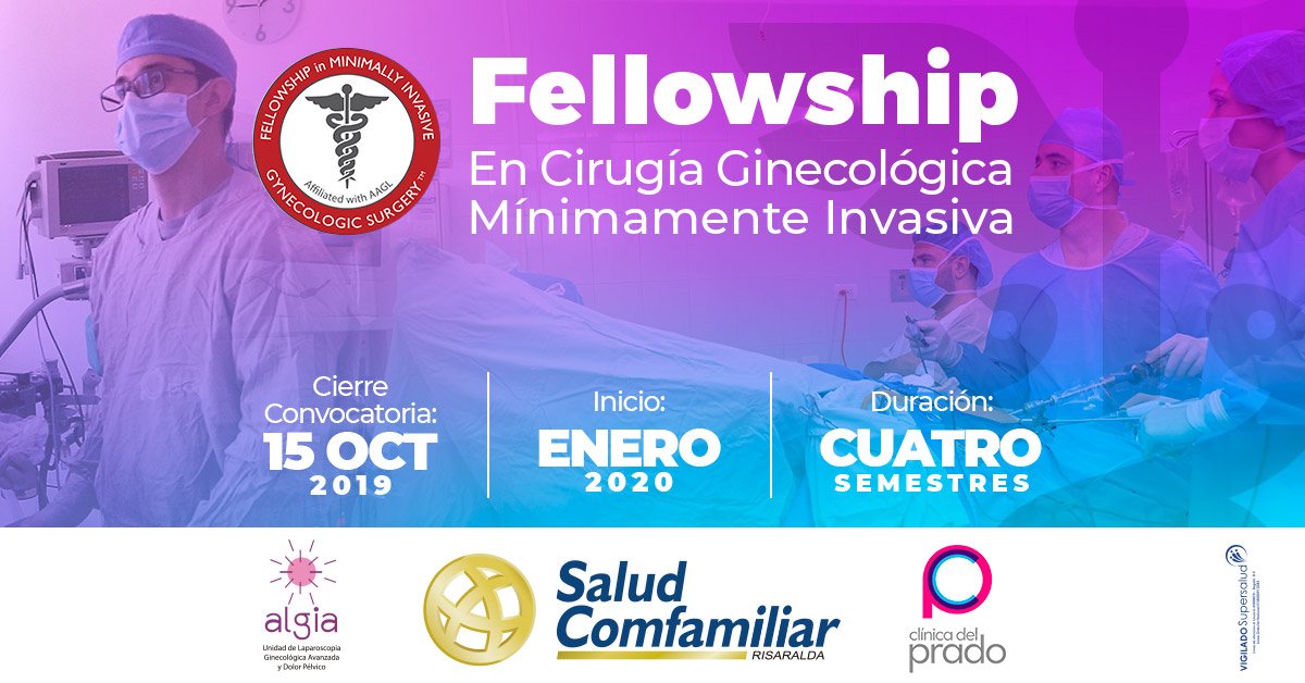 El programa de entrenamiento en cirugía ginecológica de mínima invasión, certificado por la Asociación Americana de Ginecólogos Laparoscopistas – AAGL en septiembre de 2018 y desarrollado por Algia, Clínica Comfamiliar y Clínica del Prado abrió sus inscripciones hasta el 15 de octubre, para que todos los ginecobstetras interesados en realizar su entrenamiento en esta área se postulen. Los seleccionados serán anunciados el 15 de noviembre y su formación iniciará en enero de 2020 en Pereira o Medellín, según haya sido su preferencia.
